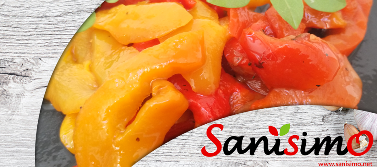 Ingredientes del producto «Pimientos rojos y amarillos asados en tiras – Sanísimo»
